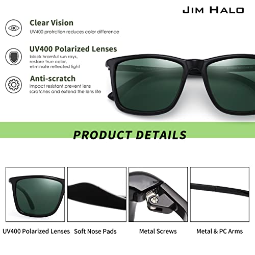 Jim Halo Polarised Sunglasses Retro Square UV400 Protection Classic Sun Glasses Men, Suitable for Sports, Driving, Cycling