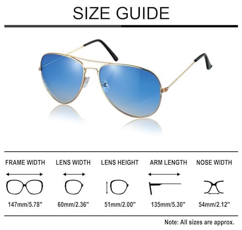 Komonee Pilot Style Sunglasses Designer Unisex UV400 Lens Shades