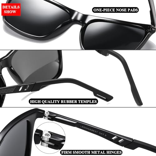 LEDING&BEST Polarised Sunglasses Mens Womens Lightweight Square Frame 100% UV Protection for Driving Fishing Travel Sports Sun glasses