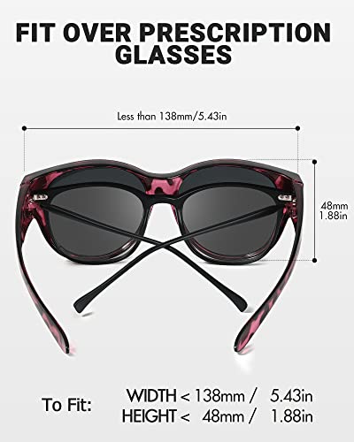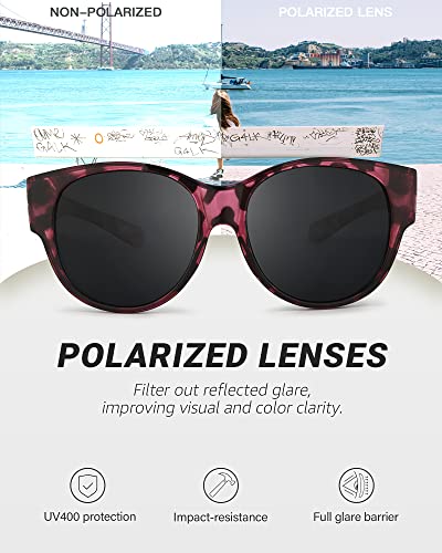 LVIOE Polarised Fitover Sunglasses for Women, Trendy Round Frame Wear Over Glasses with UV Protection