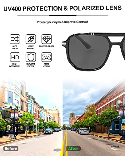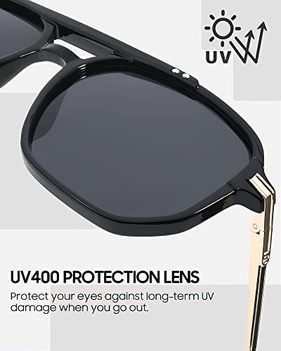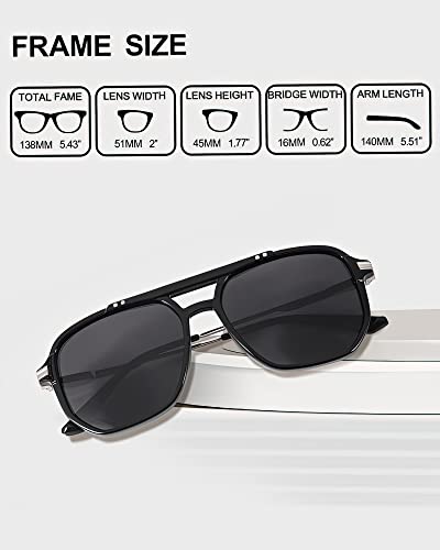 SODQW Polarised Sunglasses for Men Women, Mirrored Lenses UV400 Protection Pilot Sun Glasses with Double Bridge are available in classic Black and stylish Blue variations. Each pair features polarised, mirrored lenses designed for maximum UV400 protection, ensuring your eyes stay shielded from harmful sun rays. The timeless pilot design, complemented by a double bridge, offers a chic and comfortable fit for both men and women.