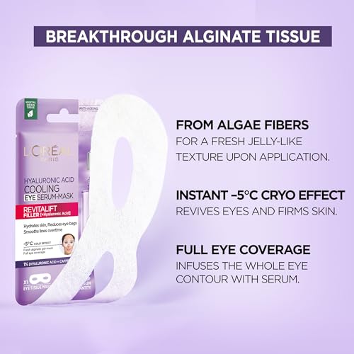 L’Oreal Paris Revitalift Filler Hyaluronic Acid and Caffeine Plumping and Brightening Eye Sheet Mask Variants: