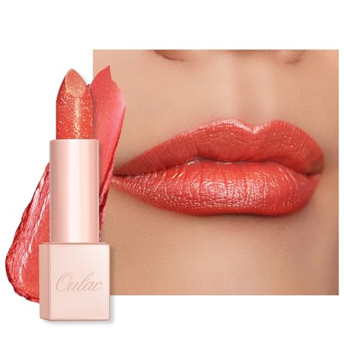 Oulac Coral Red Shimmer Lipstick for Women-Moisture Tinted Lip Balm for Dry Lips, Glitter Surface, Creamy Formula, Hydrating & Smooth, Infused with Shea Butter, Vegan, Clean Beauty (PG04) Sunrise