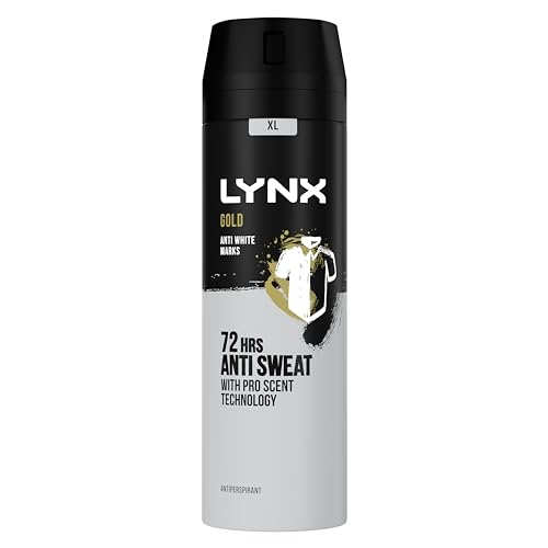 Lynx XL Gold Anti White Marks Anti-Perspirant Deodorant Spray 72 hour protection against odour and wetness no fuss aerosol for all-day freshness 6x 200 ml