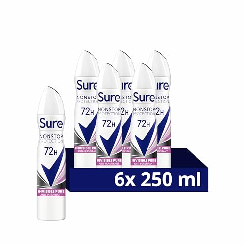 Sure Nonstop Protection Invisible Pure Anti-Perspirant Deodorant with Body Heat Activated technology Spray for 72-hour odour and sweat protection 6x 250 ml