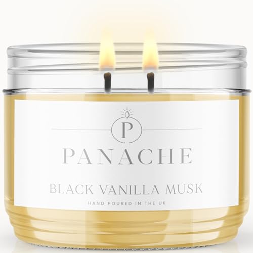 Panache Double Wicked Scented Candles | Black Vanilla Musk | 350 gram Jar Candle | Natural Soy Wax | 48 Hours Burn | Great Gift Set for Women