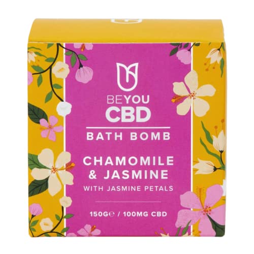BeYou CBD Bath Bomb – Chamomile & Jasmine with Jasmine Petals | 100% Pure & Natural Oils | 100mg CBD | Soothe, Relax & Restore Sore Muscles